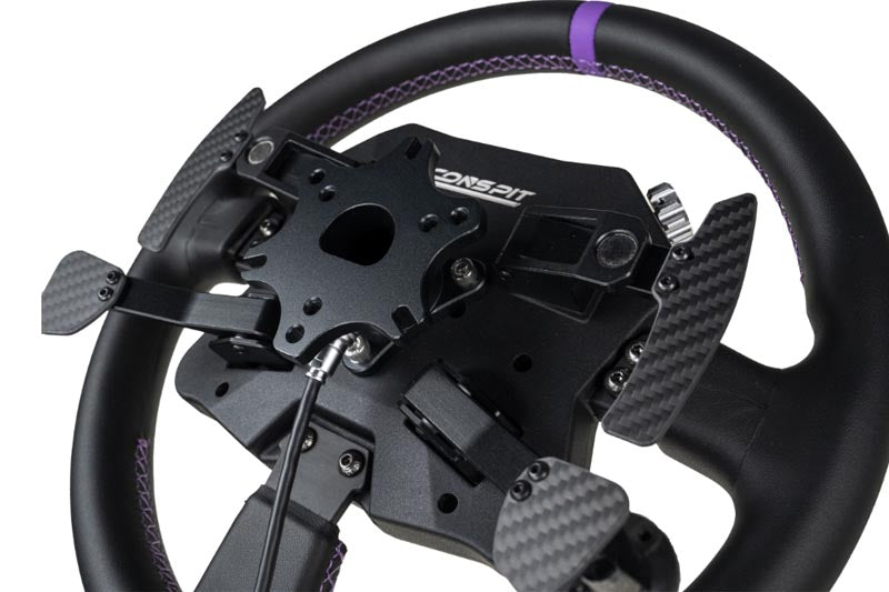 The 310 APEX serves as an open hub and features CONSPIT's exclusive 2.99-inch LCD display, as well as compatibility with multiple steering wheel mounts. Its all-metal construction offers premium build quality combined with innovative control features that take sim racing to a new level for beginners. All-aluminum alloy construction – robust yet lightweight: The front and rear housings are precision-machined from an aluminum alloy using a die-casting process, offering optimal weight reduction, rigidity, and vibration damping. Enhanced acoustic and haptic feedback ensures an immersive riding experience. 3D front panel – where design meets function: The 310 APEX utilizes the flexibility of die-cast aluminum and features a contoured 3D front panel that follows the design language of CONSPIT's hardware ecosystem. The ergonomic layout allows intuitive access to the controls, ensuring excellent handling. Standard faux leather steering wheel – comfort and durability: The steering wheel is made of wear-resistant, environmentally friendly microfiber fabric and features seamless stitching on the grip zones, accentuated by purple stitching and a central alignment mark, ensuring long-lasting comfort and precision. Professional controls – 104 fully customizable inputs: Equipped with encoder remapping, the steering wheel supports up to 104 independent inputs, meeting the demands of competitive sim racing. Future firmware updates will expand functionality, including the assignment of rotation macros. 8 customizable RGB keys – tactile and responsive: With an actuation force of 500 g and a short travel, these keys offer precise input. Full RGB lighting works with CONSPIT Link 2.0 and SimHub for dynamic telemetry visualization. 2 programmable encoder rotary controls – versatile input options: Strategically placed for thumb operation, each rotary control supports 24 input combinations via remapping, thus offering extensive in-vehicle adjustment options. 2 Funky Switches – Multifunctional Control: As an essential element for sim racing, each physical button can be assigned up to...