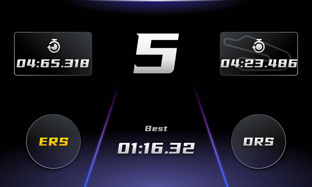 Inspired by real racing cars, our redesigned interface adopts a new, flat style, with 15 different configurations possible, so drivers can get the essential information when they need it most: speed, RPM, gears, tire temperatures, relative times, current or fastest lap times, fuel, ERS levels, vehicle status, damage, DRS and much more.