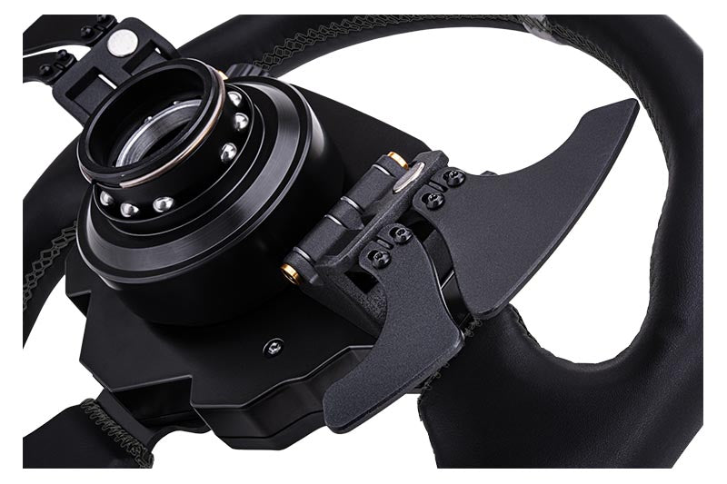 With 12 buttons, two rotary knobs, a 5-way joystick, and four paddles, you have all the essential functions right at your fingertips. The high encoder resolution enables the finest steering movements and ensures smooth, responsive control – whether at your desk or on a professional racing rig.