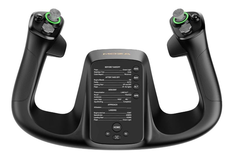 Yoke für Flugsimulatoren, realistische Bewegungen, 34 Tasten und Schalter, Wireless Yokeverbindung, Quick-Release-Mechanismus für Yokes, Gehäuse aus hochwertigem Aluminium.