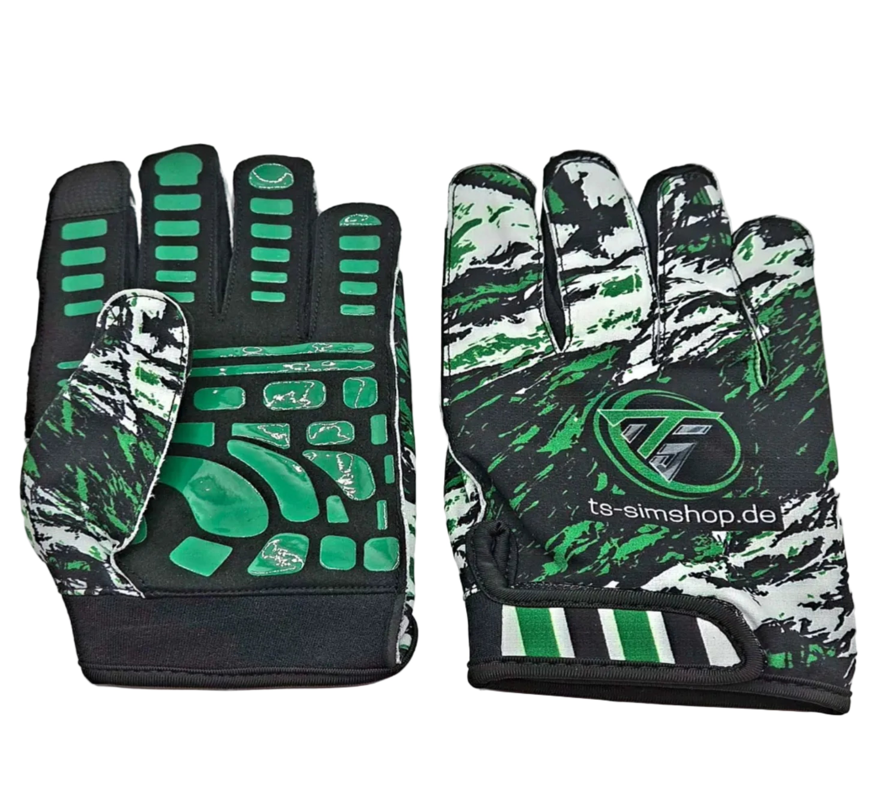 Kurze Simracing-Handschuhe Diese kurzen Simracing-Handschuhe aus elastischem Elasthan wurden speziell für Racing-Enthusiasten entwickelt, die Wert auf Präzision, Komfort und Kontrolle legen. Die griffigen Silikonapplikationen auf der Handinnenseite sorgen für optimalen Halt am Lenkrad – auch bei langen Sessions. Durch das leichte und atmungsaktive Material bleiben deine Hände angenehm kühl und beweglich. Produktdetails: Einsatzbereich: Speziell für Simracing entwickelt Material: Hochwertiges Elasthan – dehnbar, atmungsaktiv und angenehm zu tragen Grip: Rutschfeste Silikonbeschichtung auf der Innenseite für perfekte Lenkradkontrolle Design: Ergonomische Passform mit sportlichem Look und reflektierenden Details Verschluss: Klettverschluss am Handgelenk für sicheren Halt Größen: EU-Größen Größenhinweis: Bei kräftigeren Fingern bitte eine Nummer größer wählen Maximale Kontrolle – bei jedem Rennen. Mit diesen Simracing-Handschuhen bringst du dein Fahrgefühl auf das nächste Level.